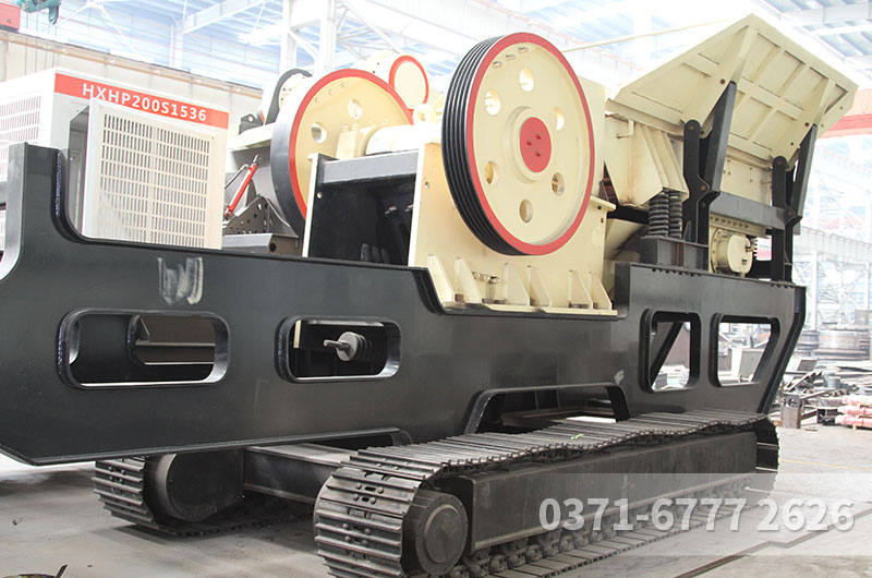 履带式移动破碎站:同样将进料口、破碎主机、出料带等集成到一台机子上,集成度较高,本身具备履带底盘进行移动,自己可提供动力,如果长距离运输,可直接将破碎站开到大拖车上,短距离移动(如施工场地转场)可直接开动破碎站进行移动,灵活多变。且履带移动破碎站,不用人驾驶,而是采用遥控操控的方式,安全度高、高度智能化,简单易学。