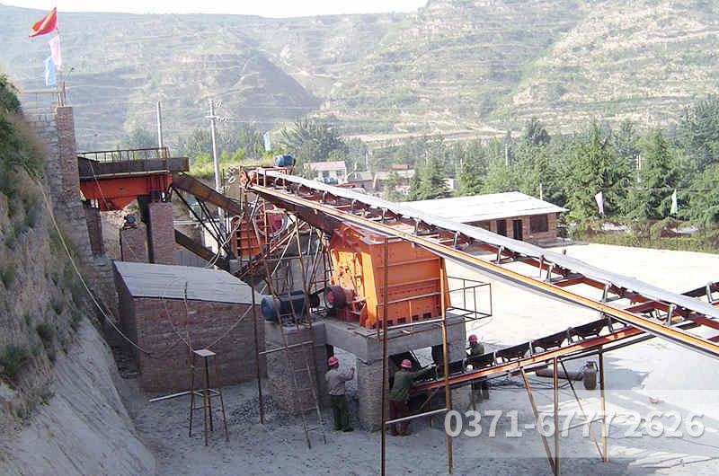 矿石经给料斗进入冲击破碎机内,分别通过分料器中心入料管进入叶轮,当物料进入高速旋转的叶轮后,在叶轮内被迅速加速,其加速度可达数倍以至数百倍的重力加速度,然后以每70—100m/s的速度从叶轮流道抛射出去,首先与自由落体进入涡动破碎腔内叶轮外侧的物料冲击而破碎,并一起冲击到涡动破碎腔内物料床层上,被物料床层反弹斜向上冲刺到涡动破碎腔的顶部,又改变其运动方向,偏转向下运动,从叶轮流道发射出来的物料形成连续的物料幕,这样,一块物料在涡轮破碎腔内受到两次以至多次的冲击破碎作用。在整个破碎过程中,物料是相互自行冲击而破碎,不与金属元件直接接触。由于从叶轮流道发射出去的物料斜向圆周冲击,形成物料在涡动破碎腔内物料床层上的旋转运动,产生物料之间的涡动磨碎作用,物料之间由于冲击摩擦而粉碎,被破碎的物料由排料口排出。