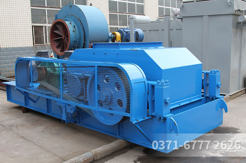 3、驱动机构是由两个电动机,通过三角皮带传动到槽轮上拖动辊轮,按照相对方向运动旋转。在破碎物料时,物料从进料口通过辊轮,经碾压而破碎,破碎后的成品从底架下面排出。