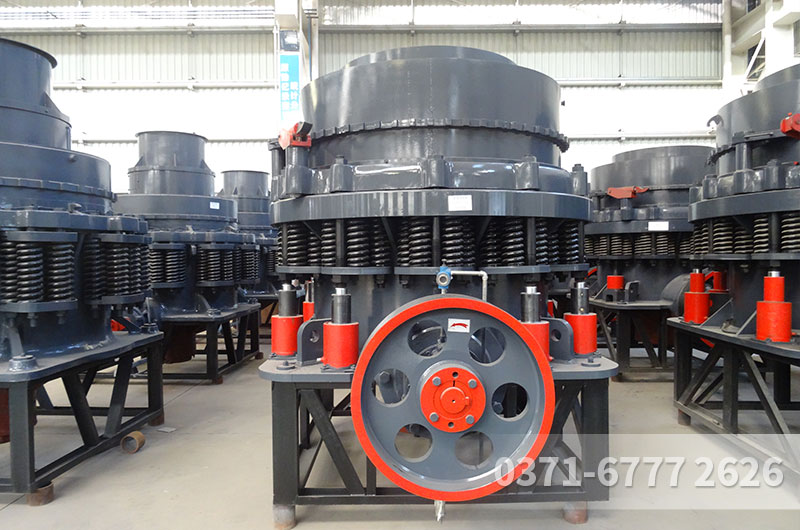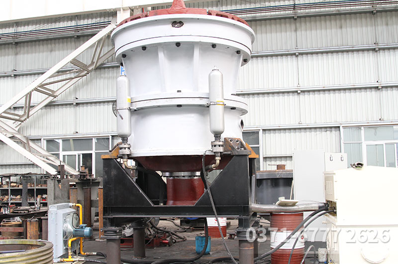 5)动锥和定锥都是正置,动锥摆动时,在破碎腔出料口附近,动锥与定锥之间有一段间隙相等的平行带,使成品料度均匀。进料口尺寸不大,能够处理的都是经过初次破碎的物料。