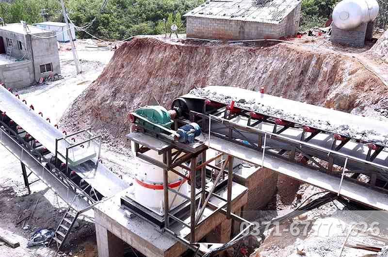 5)动锥和定锥都是正置,动锥摆动时,在破碎腔出料口附近,动锥与定锥之间有一段间隙相等的平行带,使成品料度均匀。进料口尺寸不大,能够处理的都是经过初次破碎的物料。