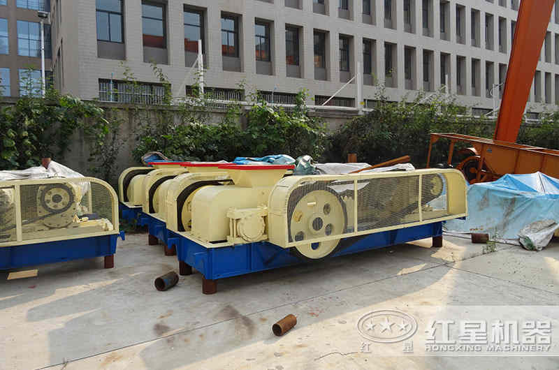 当物料进入机器的破碎腔以后,物料受到转动辊轴的啮力作用,使物料被逼通过两辊之间,同时受到辊轴的挤轧和剪磨,物料即开始碎裂,碎裂后的小颗粒沿着辊子旋转的切线,通过两辊轴的间隙,向机器下方抛出,超过间隙的大颗粒物料,继续被破碎成小颗粒排出。