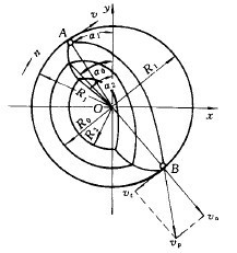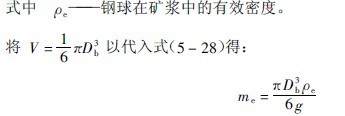 钢球落到落回点B时,其速度vp可分解为从磨机中心到落回点B方向的法向分速度vn及与筒体圆周相切的切向速度v1。法向速度vn用于冲击矿块,切向速度v1沿筒壁切线方向对矿块或矿粒产生磨剥作用。这里主要考虑钢球对矿块的冲击作用,故未考虑v1。根据戴维斯及列文松等人的理论,vn为: