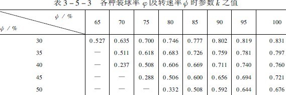 有关,k可直接由表3-5-3中查取。又D0=2R0,则“中间缩聚层”上的一个球落到落回点衬板上的法向冲击动能En为: