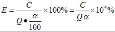 …………①,式中E是筛分效率(%),C是筛下产品重量,Q是入筛原物料重量,α是入筛原物料中小于筛孔的级别的含量(%)。