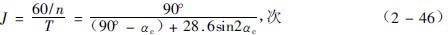 由此式可知:钢球的循环次数取决于脱离角ac。当磨机转速不变时,不同的球层有不同的脱离角,它的循环次数也不同。磨机的转速越高,ac越小,循环次数也越少。到了钢球离心化时,ac=0,J=1,钢球贴在衬板上与磨机一起转动。