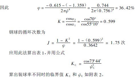 ,所以R2(或由它算出的K)的值依从转速n而有一极限值。超过此极小值,多加的那些球就不能作抛物落下。所以上式中的J,既与装球率