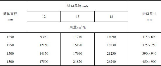 表3-4-9旋风集尘器气流入口速度与分离粒度的关系